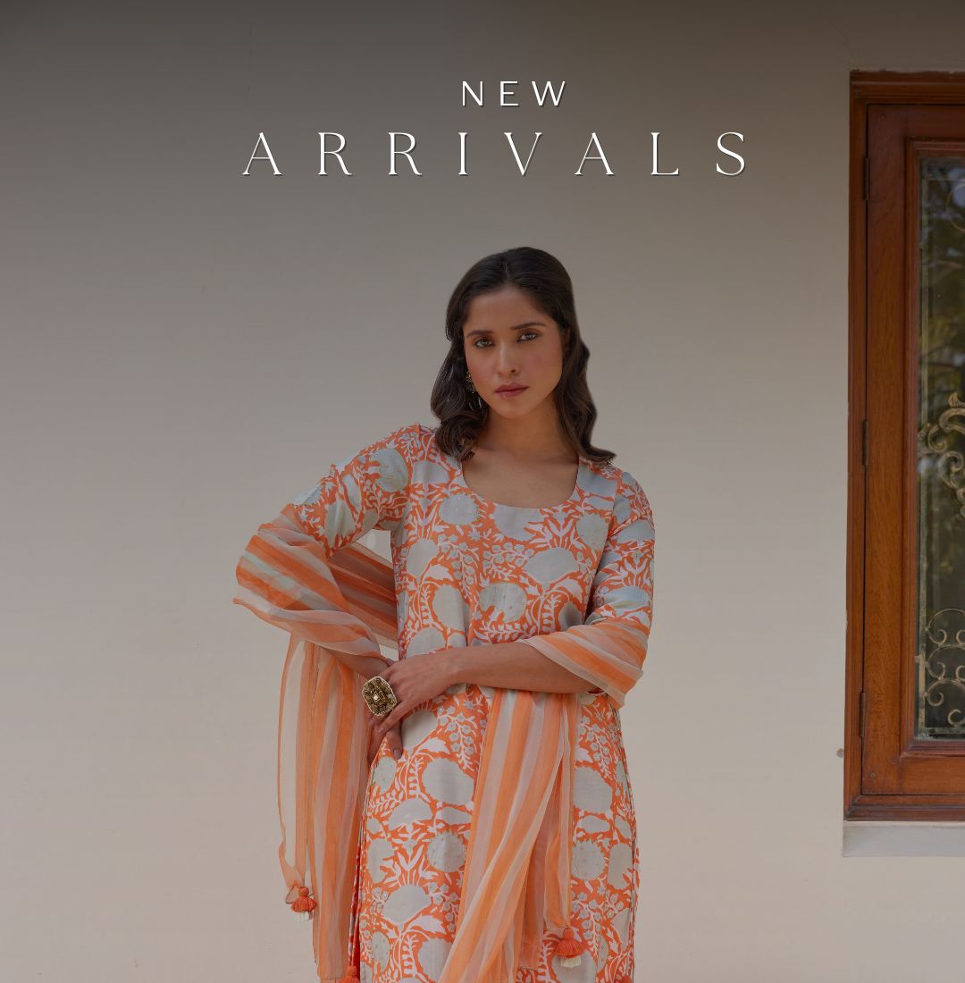 Orange Hand Block Printed Floral Jaal Tunic Set (Set of Two) Sale priceRs. 3,500.00 Regular priceRs. 5,950.00